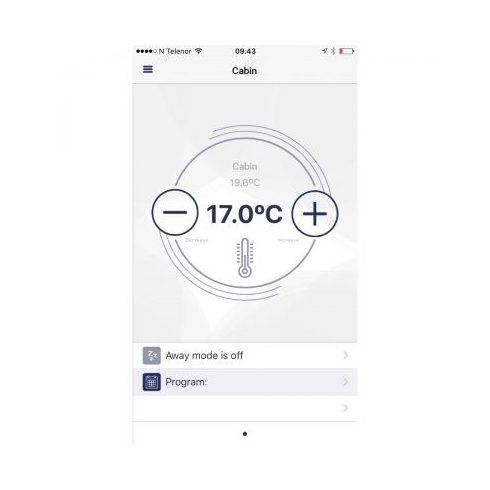 A termosztát pontosan fenntartja a beállított hőmérsékletet, mely elengedhetetlen a kényelmes és gazdaságos működéshez. Az LCD kijelző mutatja az aktuális szobahőmérsékletet, melyet az okostelefonon, tableten az applikáción keresztül bármikor könnyen változtathatunk.